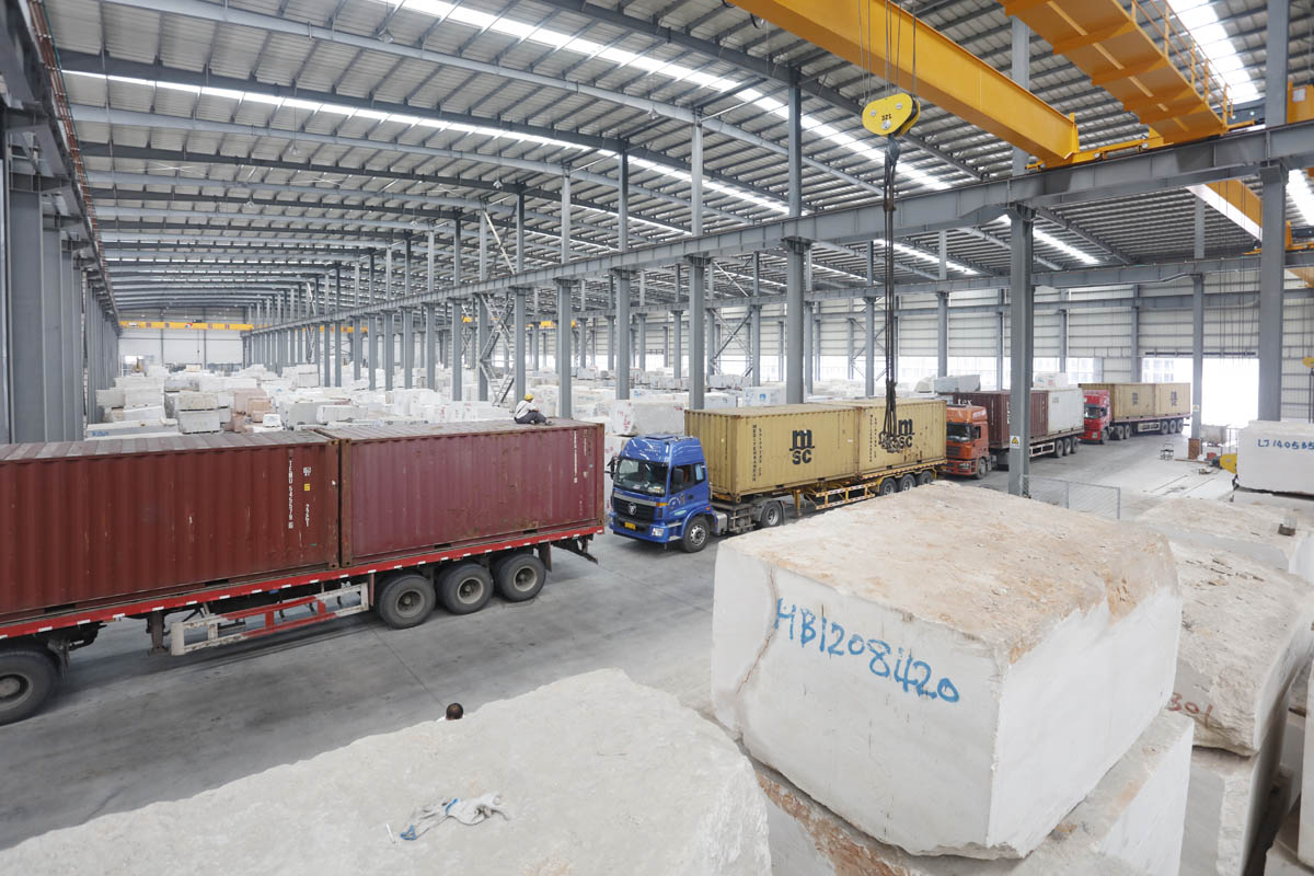 开云中国采用世界先进的环保理念打造超大型室内荒料场。该荒料场实际面积为